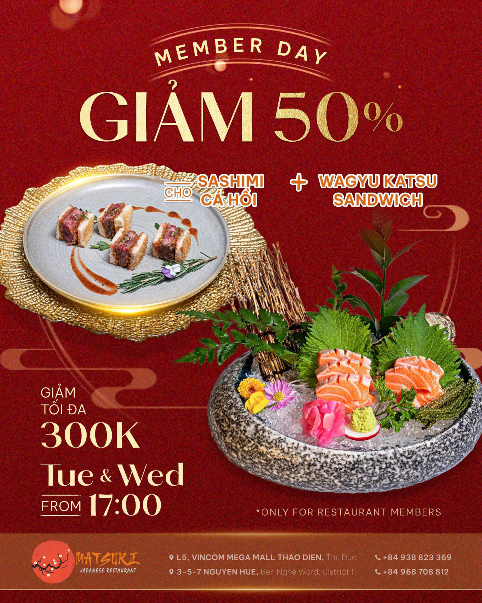 Chào mừng ngày hội thành viên – Member Day, Matsuri Japanese Restaurant hân hạnh gửi đến quý khách hàng những ưu đãi vô cùng hấp dẫn chỉ dành riêng cho các thành viên thân thiết!